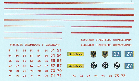Decalsatz Esslinger Trieb- und Beiwagen in der letzten Ausführung