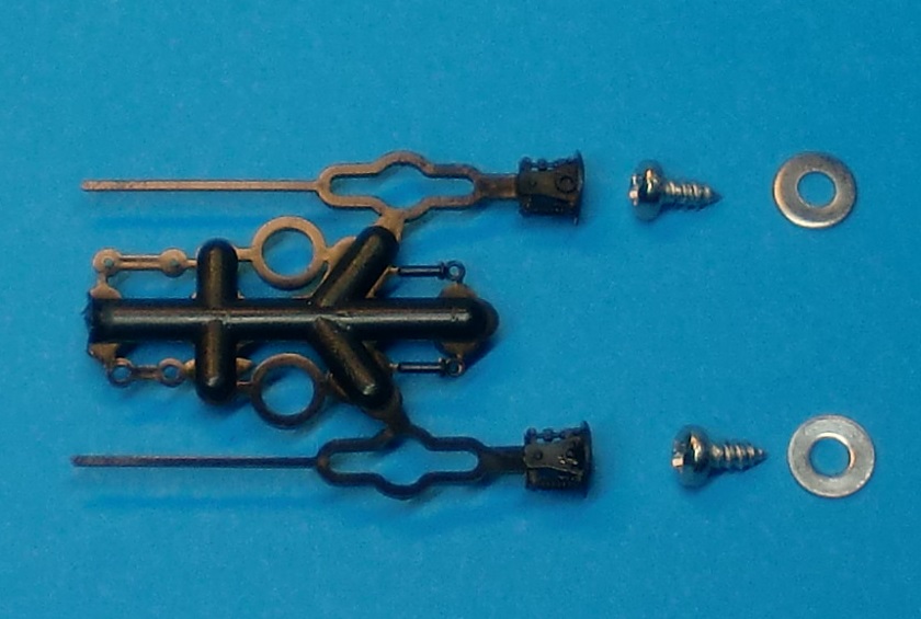 2 Mittelpuffer, 2 Scheinwerfer und 2 Türgriffe aus Messingguss.